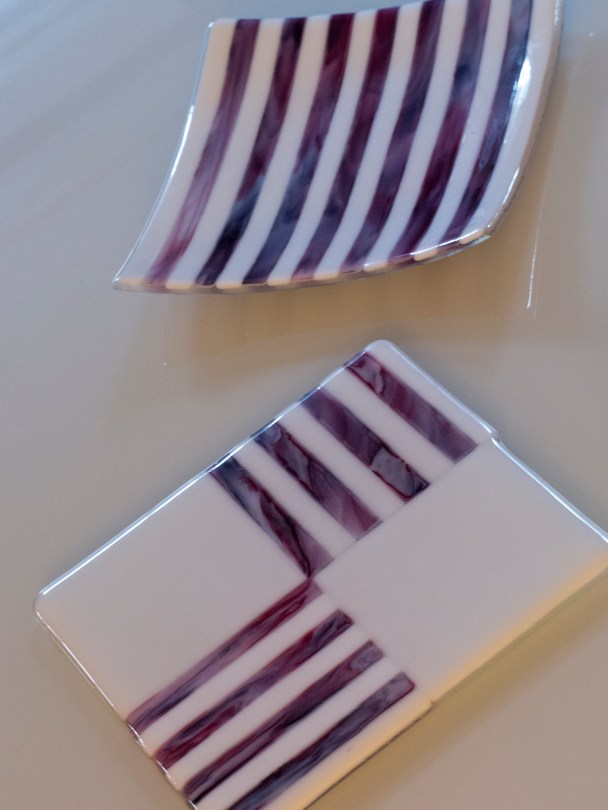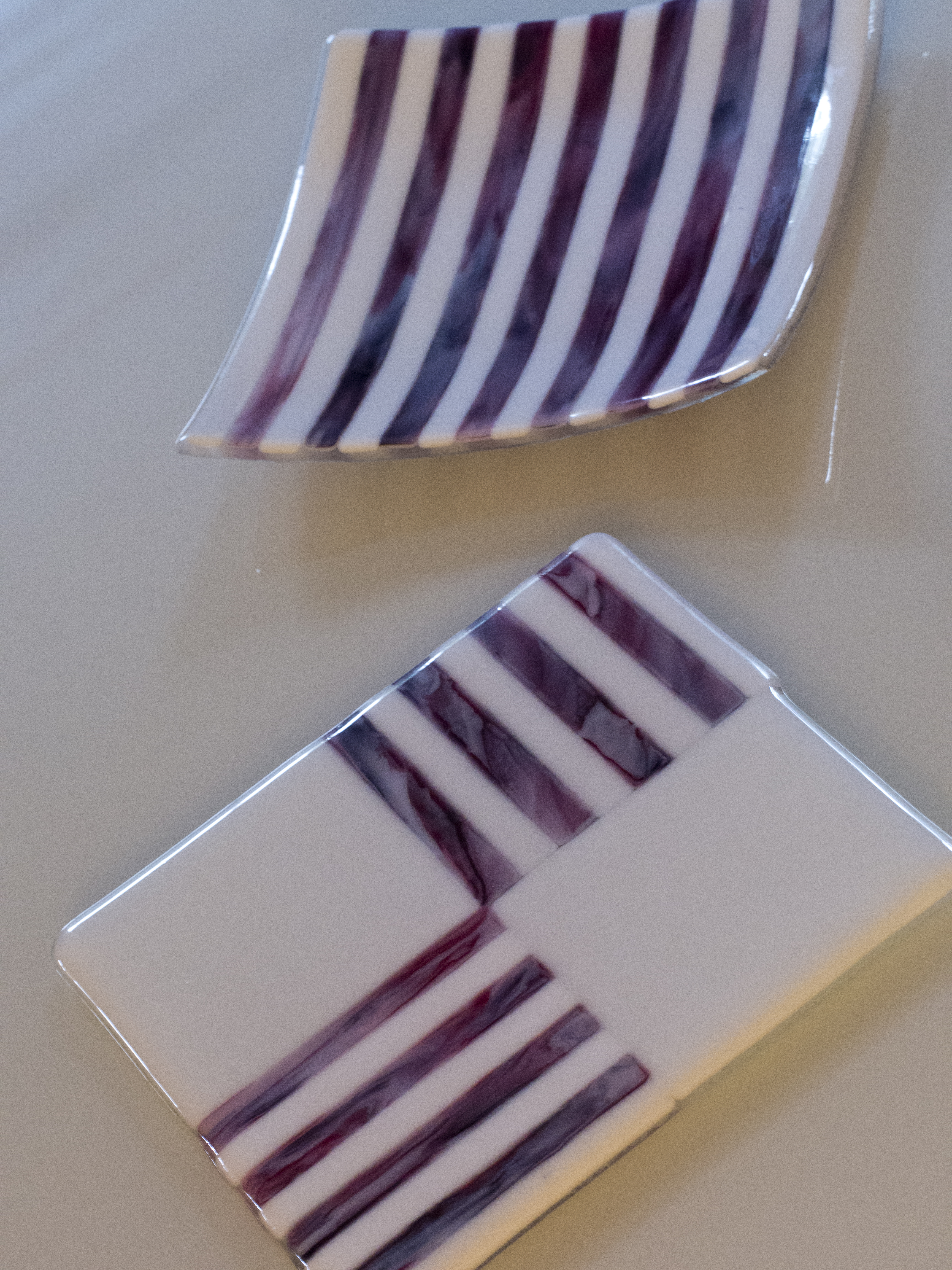 Purple streaks [SOLD] January 12, 2016 3456 × 4608 Kilnformed glass 8×8 plates of streaky purple and white 8×8 plates of streaky purple and white Like Loading...