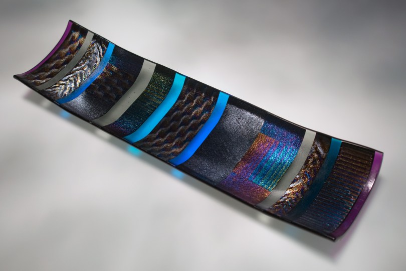 Iridescent platter [NFS] January 12, 2016 2520 × 1680 Kilnformed glass Iridescent platter 5×16″ channel plate of iridescent patterned glass [NFS] Like Loading...