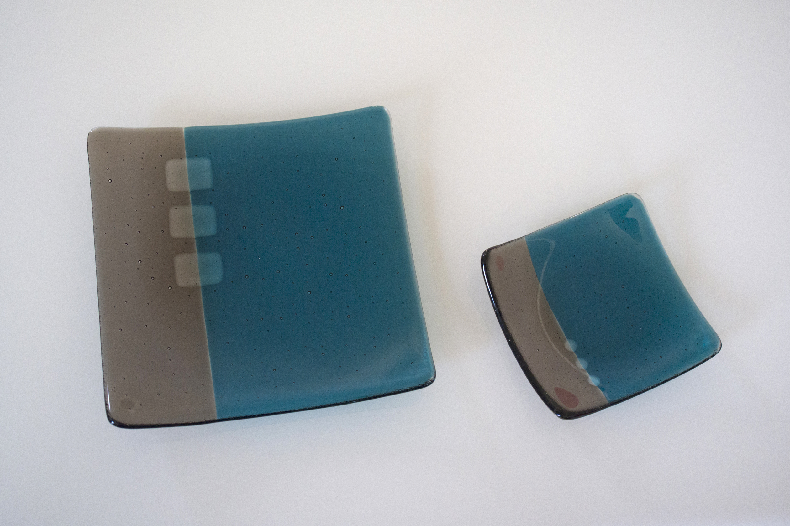 “Sand & sea” set [SOLD] February 19, 2016 2520 × 1680 Kilnformed glass “Sand & sea” set [SOLD] 8×8″ and 5×5″ plates made of khaki and sea blue glass with clear accents. [SOLD] Like Loading...