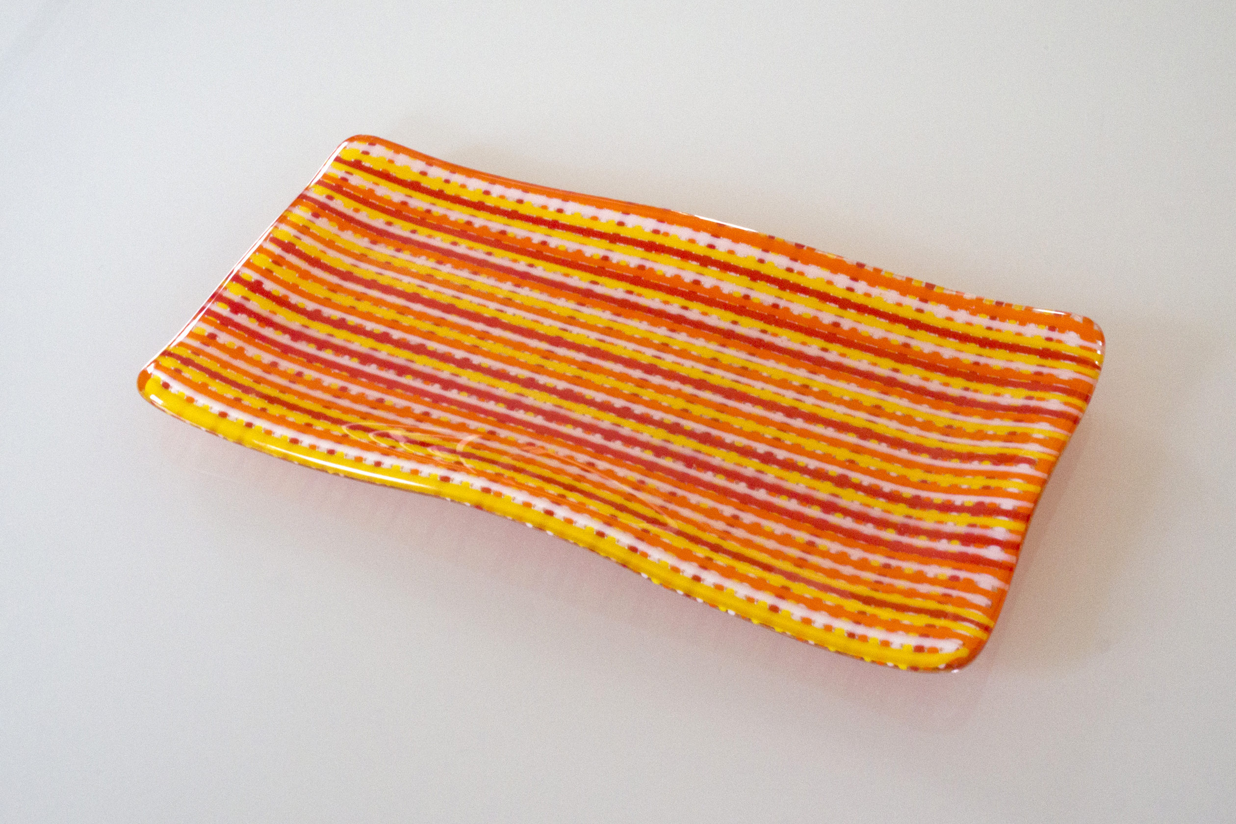 Stringer sushi plate [SOLD] February 19, 2016 2520 × 1680 Kilnformed glass Stringer sushi plate (4×8″) [SOLD] 4×8″ sushi plate made of a grid of stringers [SOLD] Like Loading...