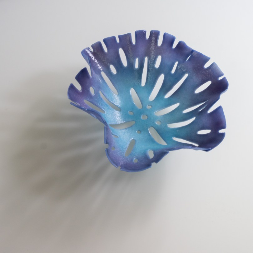 Purple & blue “corallite” bowl June 13, 2019 3888 × 3888 Purple & blue “corallite” bowl 11″ bowl composed of sifted glass powder in a range of blues and purples [SOLD] 11″ bowl composed of sifted glass powder in a range of blues and purples