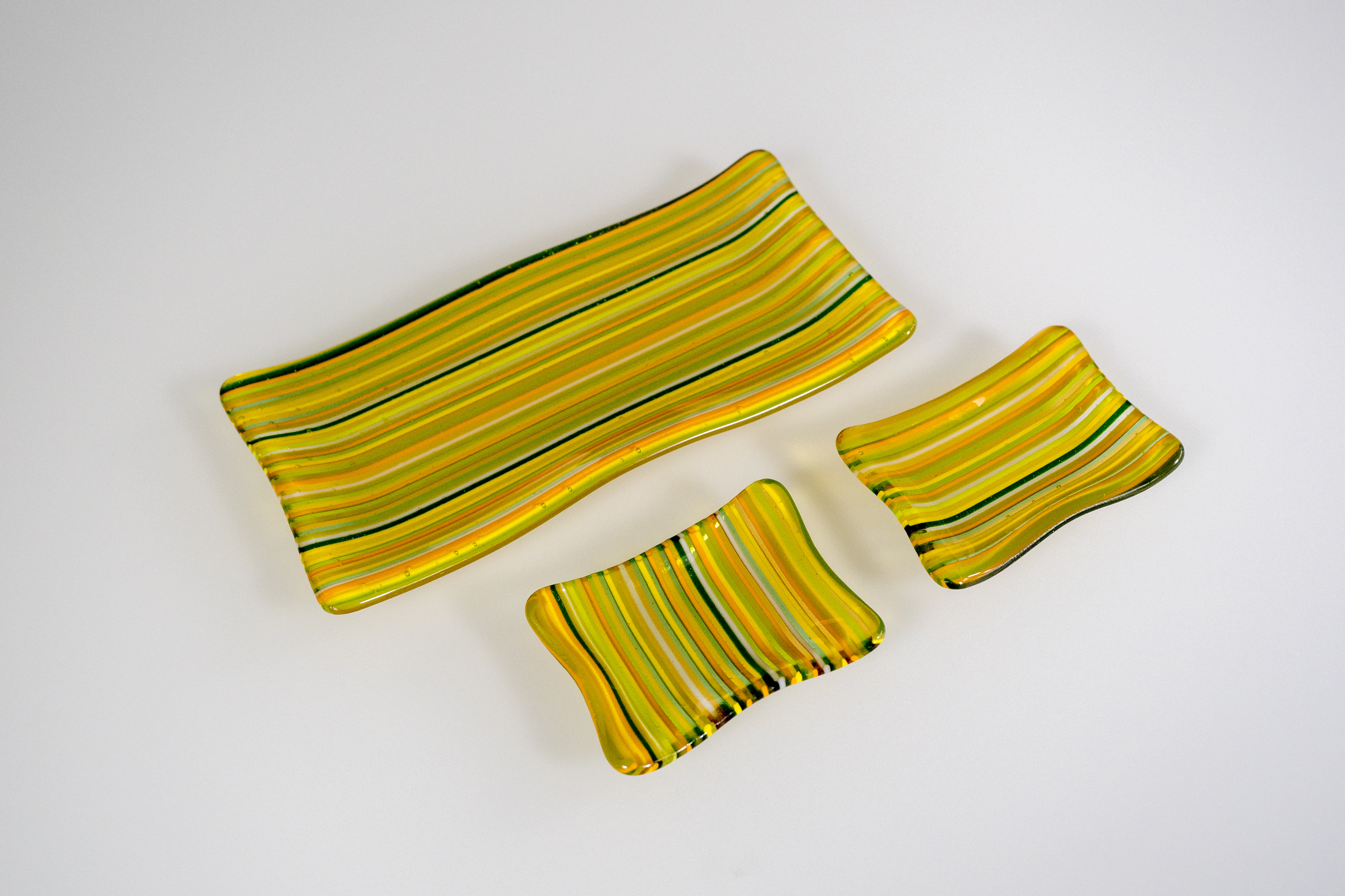 Sushi set of fine yellow lines June 13, 2019 4647 × 3098 Sushi set of fine yellow lines 2mm lines of yellows of greens in a matching set of sushi plates (4×9, 3×4) [SOLD]