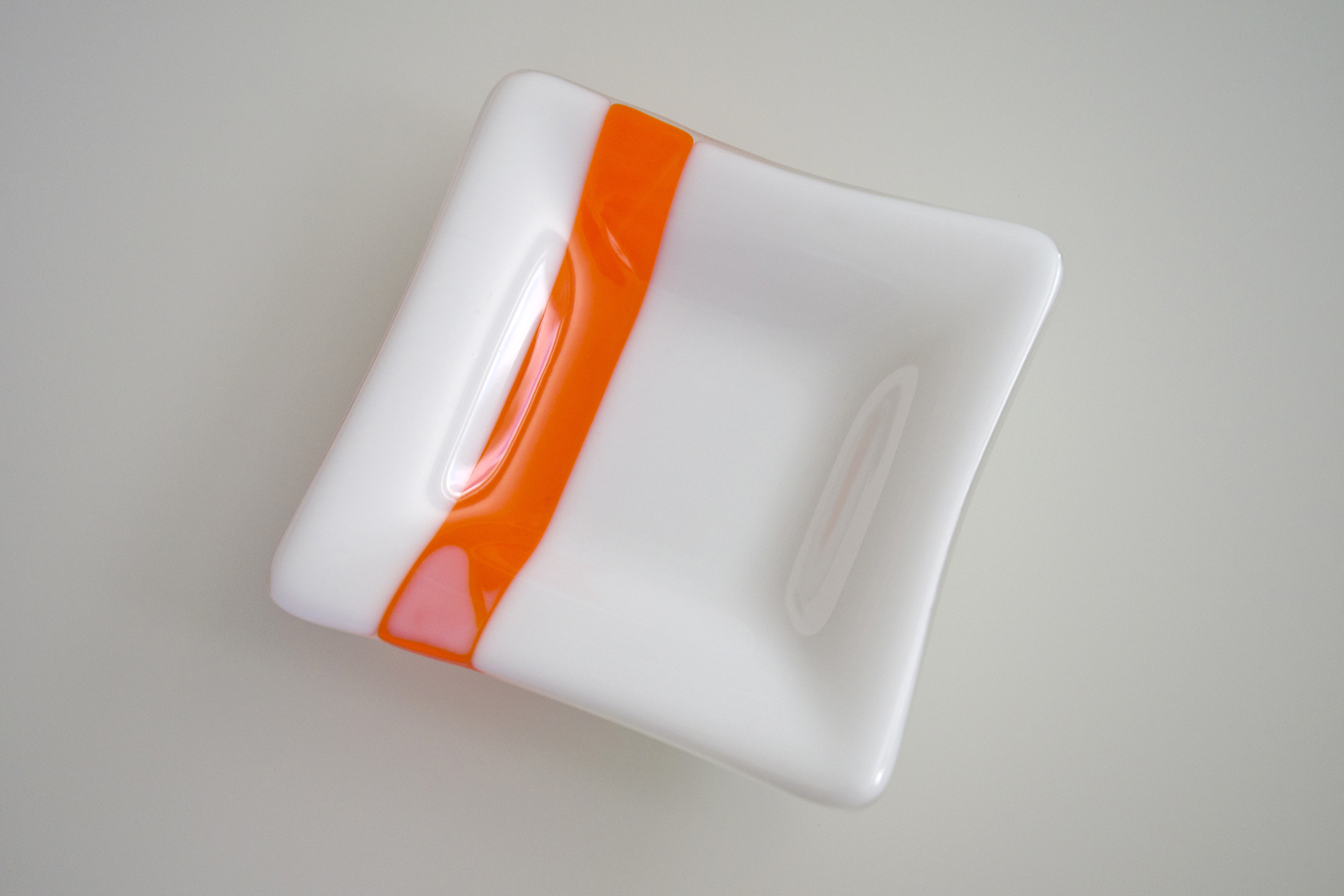 White with orange square dish [SOLD] April 5, 2016 2520 × 1680 White with orange square dish [SOLD] White square dish with orange stripe 5×5″ White square dish with an accent of a streaky orange infused with white strip