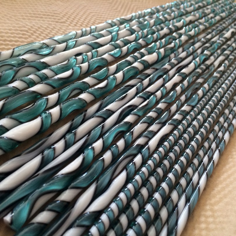 Aqua twisty canes January 31, 2016 2448 × 2448 Other glass More vitrigraph twists to start off the year. White, black, aqua tint! Hand-pulled vitrigraph glass canes made of white, black, aqua tint Like Loading...